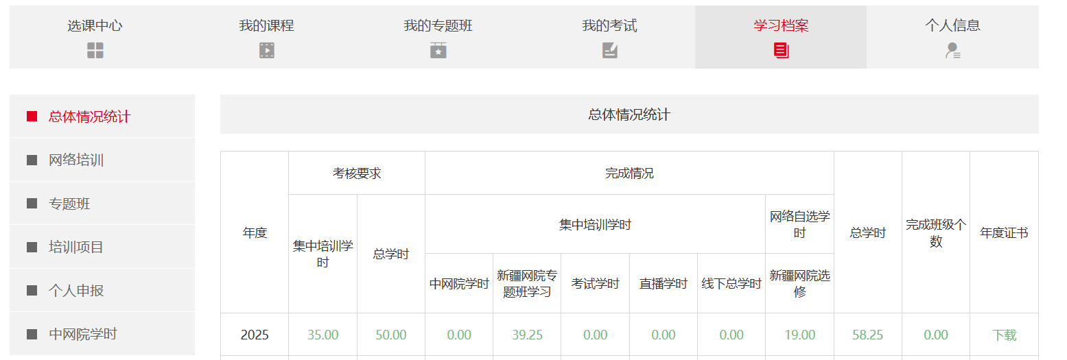 学习完成后,可下载证书。集中培训不够35学时,即使总学时达到50学时,本年度学习仍按未完成计算。集中培训课程会按计划、分批次上传网站。